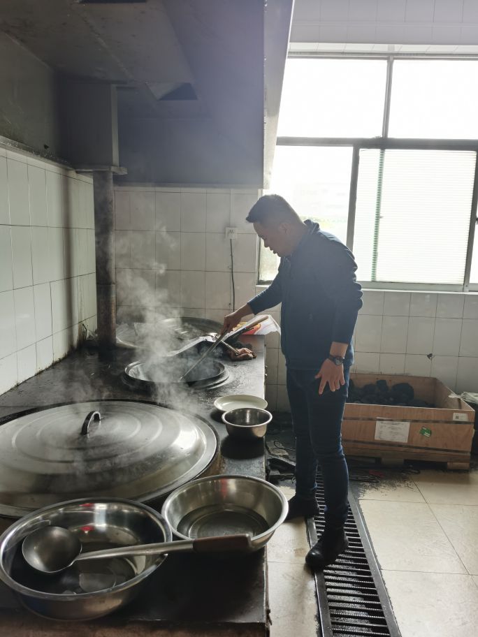 為了這次慶典,總經(jīng)理田文軍親自下廚,為大家做了他的家鄉(xiāng)菜。廠長王建德賣力的為大家準(zhǔn)備食材、財(cái)務(wù)部主管王玲為大家拌涼菜,所有人都緊張有序的準(zhǔn)備著。
